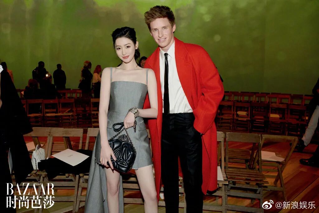 張天愛與“小雀斑”埃迪·雷德梅恩合影,
