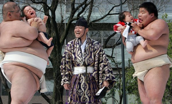 日本相撲認為比賽時有嬰兒哭是好兆頭