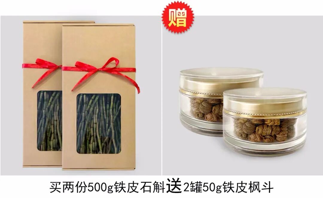 2)買10盒天目山鐵皮楓鬥顆粒,零售價5486元,快抱活動價2195元,相當於4折。送2盒500g雁蕩山石斛鮮條。