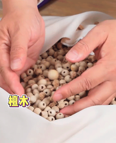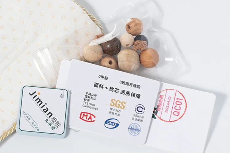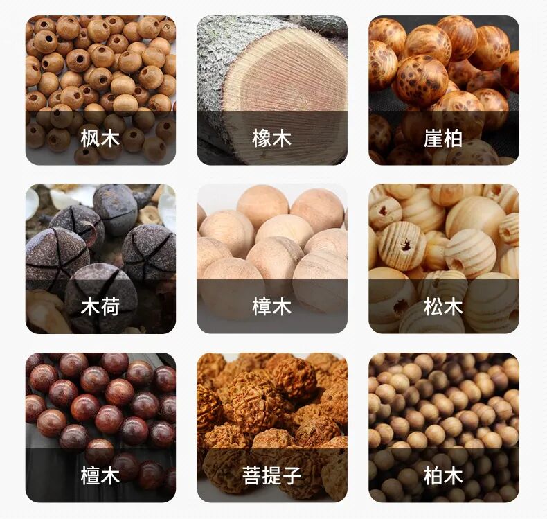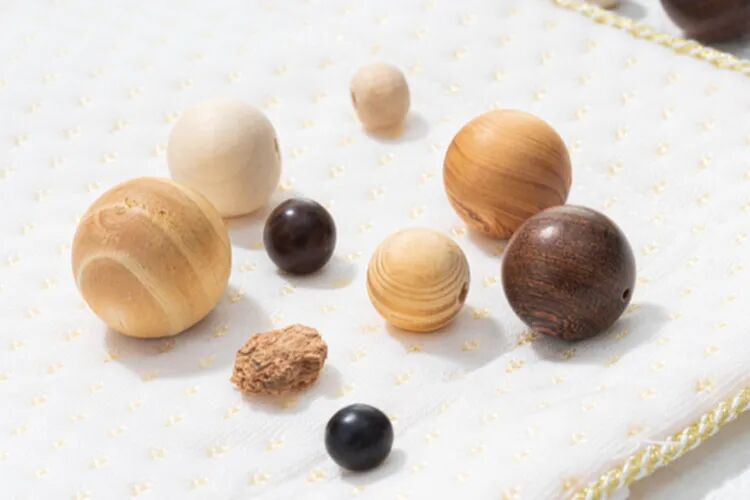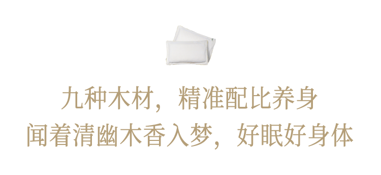 檀木、崖柏、松木、菩提、木荷等九種養身木材打磨成珠,再填充入枕。