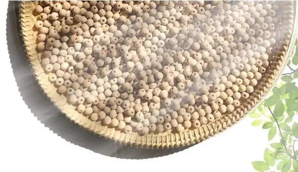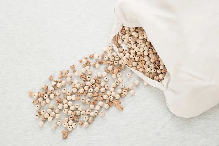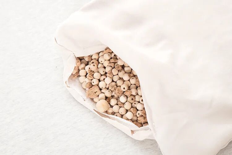 再將它們打磨成不同大小的圓潤小珠子,通過調配比例入枕,使其軟硬程度,儘可能接近我們人體頸椎的硬度,兼顧支撐力與舒適度。