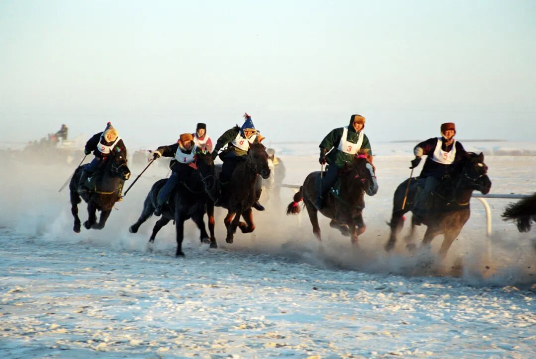 呼倫貝爾冬季那達慕大會上賽馬。圖源:圖蟲創意