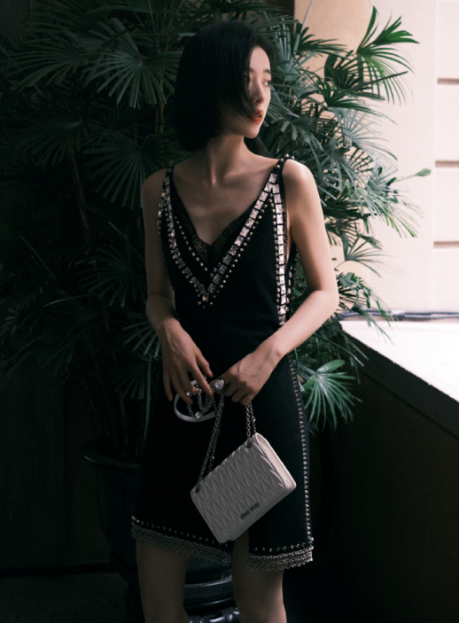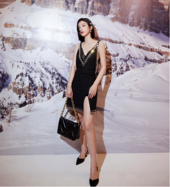 黑色裙裝總是被人一種穩重成熟的感覺,對於性格偏成熟的周雨彤而言,在黑色吊帶裙的襯托下,她看起來格外冷豔高貴,一身冷白皮也很惹人羨慕。不過一身全黑的造型會留下嚴肅老成的印象,於是周雨彤搭配了銀色的鏈條,在點綴裙子的同時,還不乏滿滿的小細節。貼合身型的鏈條搭配方式,也突出周雨彤的骨感美,使得整個造型愈發顯精緻。