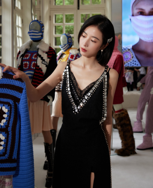 很多人認為身材豐滿的女性更加適合深V設計,其實不然,像周雨彤這樣的女性照樣可以凹出酷颯有型的感覺。