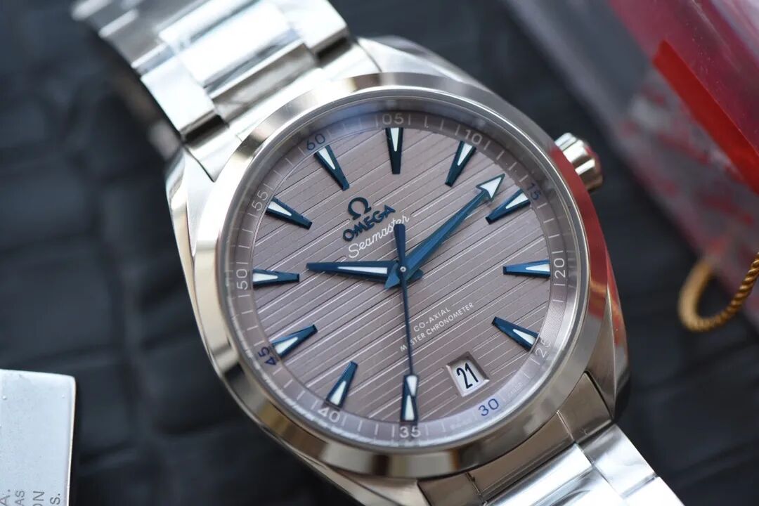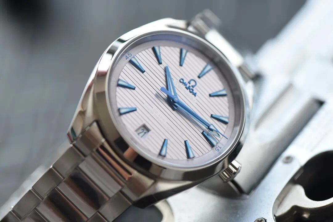 海馬系列150米在經典中透露著活力, 錶殼獨具特色的對稱設計,令腕錶整體呈現平衡之美,腕錶錶盤直徑41毫米,水平“柚木”紋理令銀色錶盤盡顯與眾不同,設計靈感源自豪華遊艇上的柚木甲板。6點鐘位置亦設有日曆窗口,指針塗敷深藍色,覆以白色Super-LumiNova夜光塗層。錶殼背面,耐磨損藍寶石玻璃背透將8900至臻天文臺機芯的運轉美態一展無遺。該機芯可抵抗高達15,000高斯的強磁場,防水深度可達150米