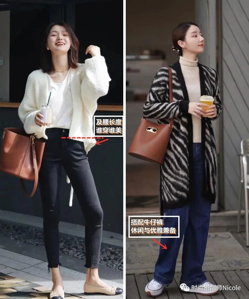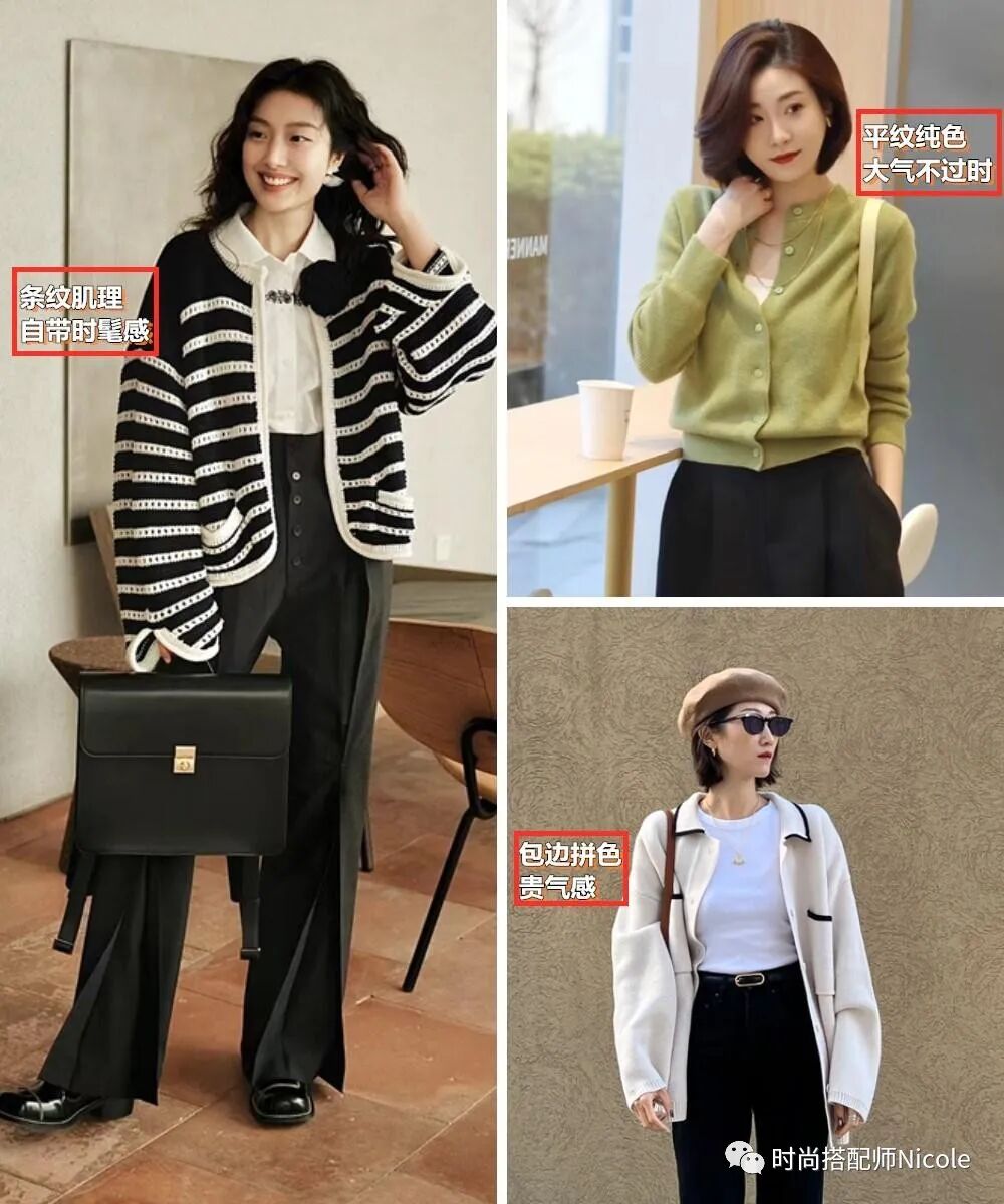 ② 薄款小開衫 春日的陽光柔和微暖,就像小開衫貼膚軟糯的觸感,正好可以襯托春天輕柔的氣息。小開衫不像毛衣那麼有侷限性,一件基礎款小開衫,可以很休閒也可以通勤,全看你搭配什麼下裝。單就舒適度而言,小開衫是春裝之最,可以包容身材曲線,舉手投足都很舒展自在。風格上也少了一段銳利、強勢,更能展現出女性的溫柔甜美氣質,給人非常好親近的感覺。