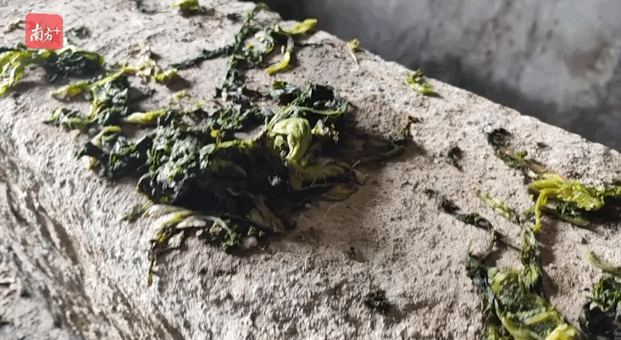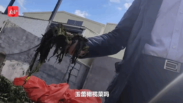 堆放芥菜的倉庫中,還擺放著梯子、塑料袋等雜物。