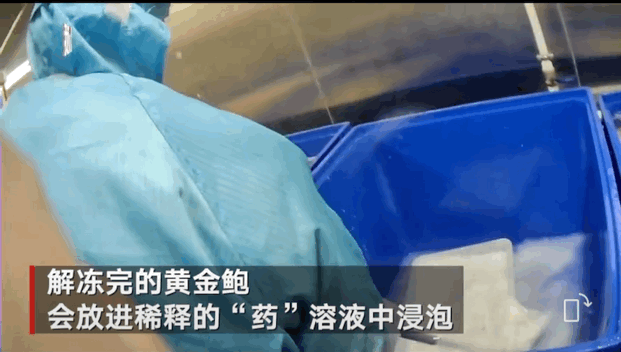 經過解凍,這些黃金鮑會被放進一種“藥”中,浸泡足足2天。