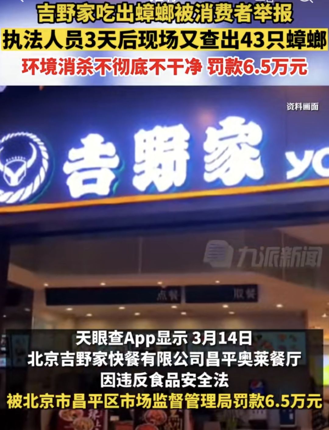 北京昌平的吉野家直接給顧客端上一盤混入蟑螂的雙拼飯。