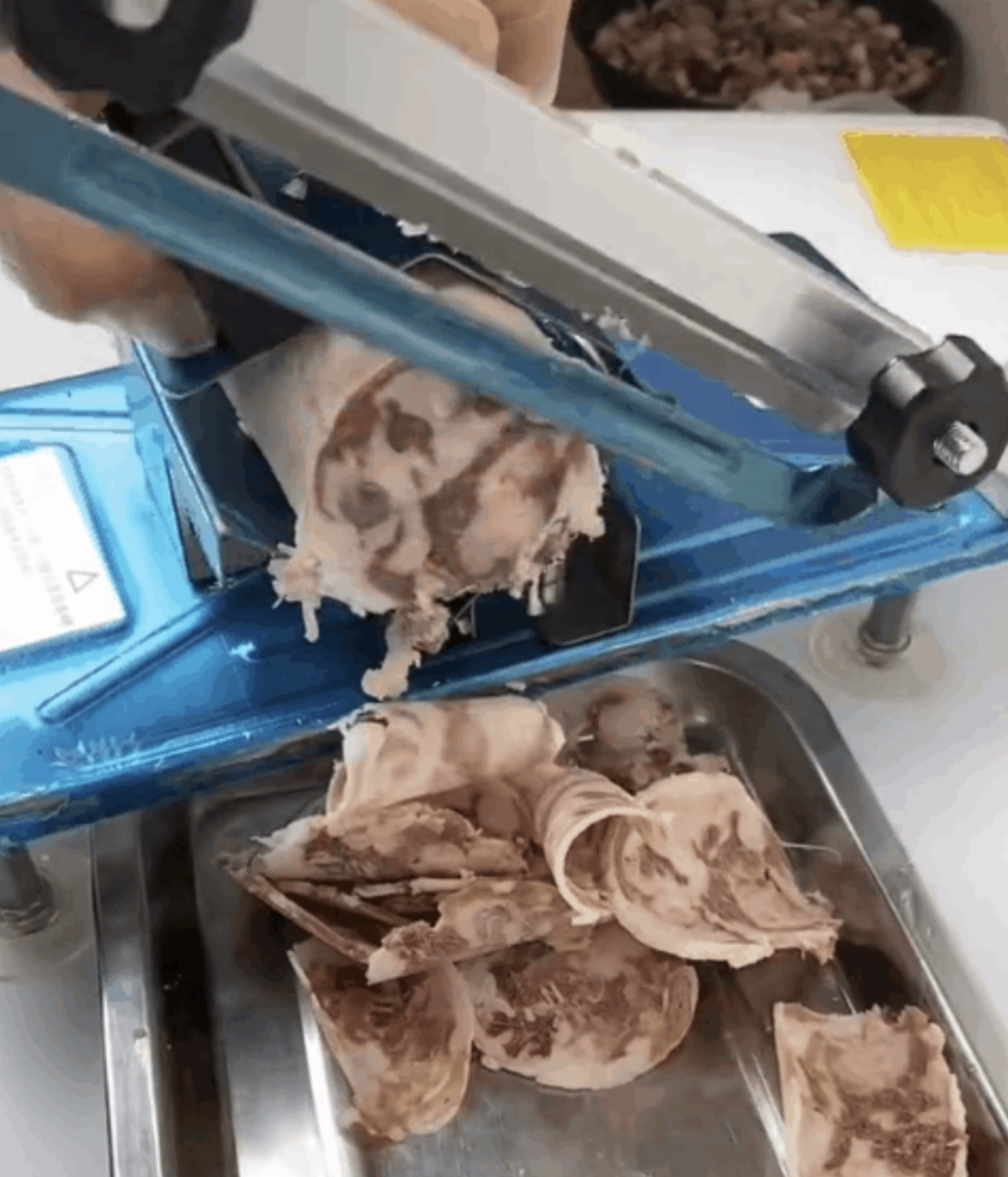 進口到國內後,這些邊角料會被絞碎,再加工成肉卷、肉餡,加上鹽、水、大豆蛋白等食品添加劑吸水增重,一款新的牛羊肉片就生產出來了。
