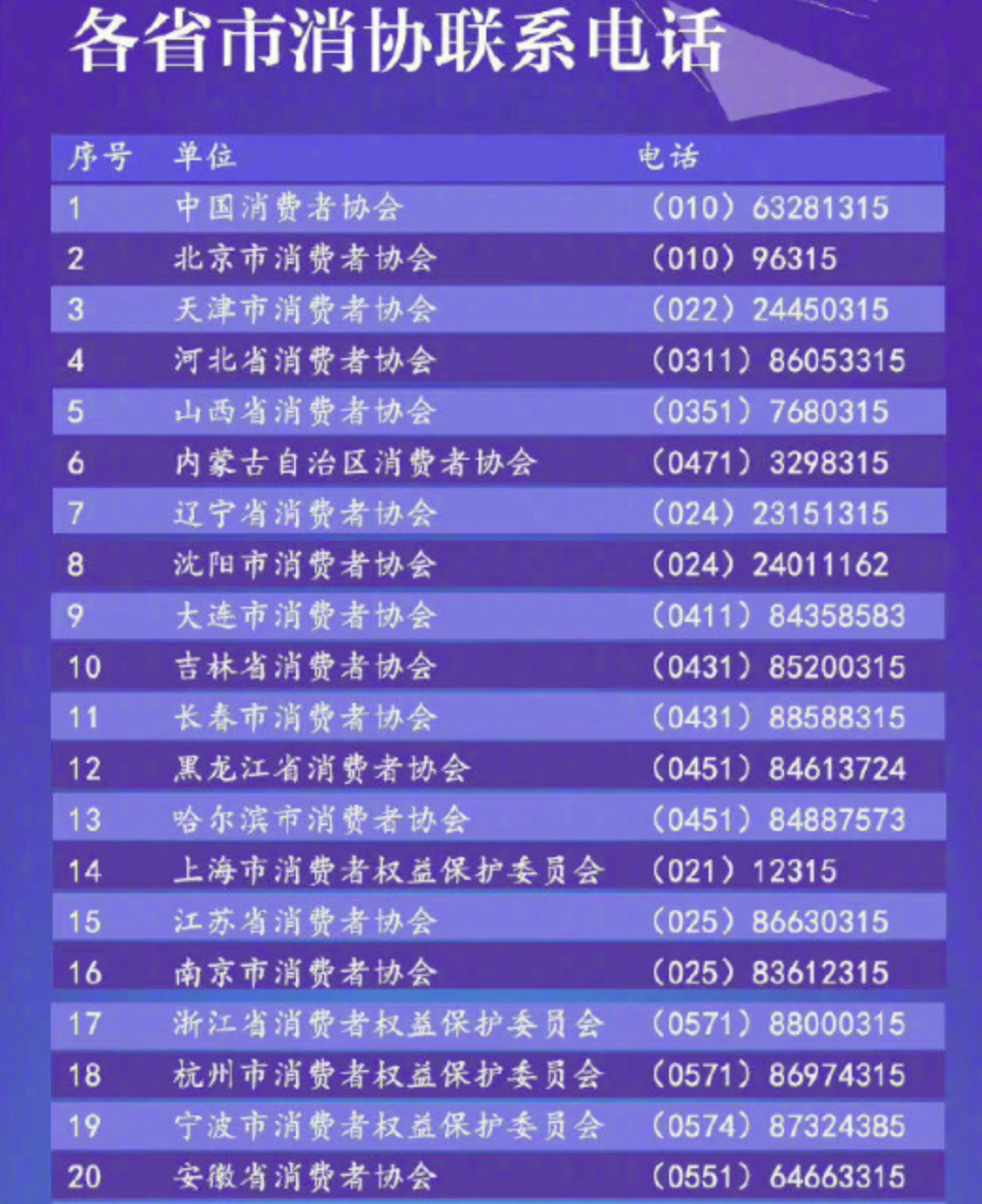 在發現商家抵賴、產品療效不符、黑心商家時,可以撥打各省市的消協聯繫電話。