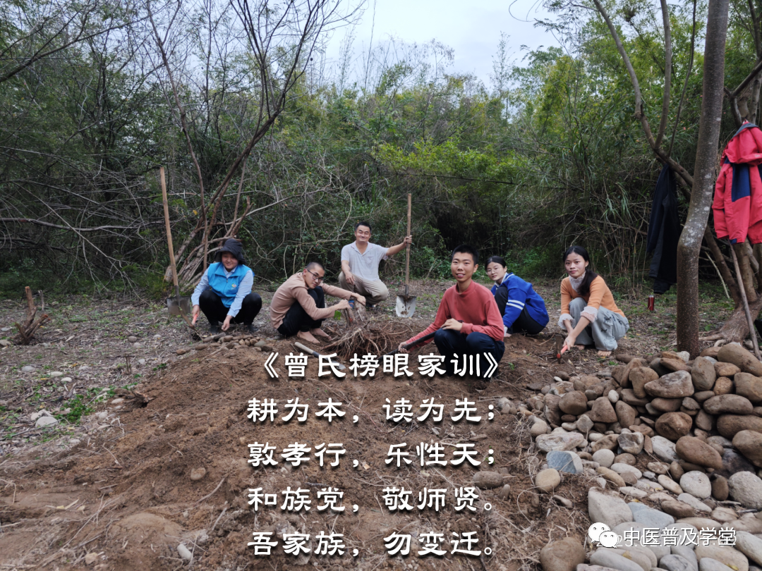 我的家族後代,世世代代千萬不要改變這個訓;首先‘耕為本’,肯定耕地的作用。下午你們開荒,佳俊、家林、可依都在那鋤樹頭,我說大家不是在鋤樹頭,就是在拉筋,在練一股破土而出的力,魄力!