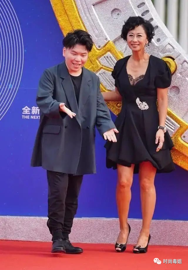 這身黑色小短裙的造型效果看上去則略遜一籌,雖然都是短髮造型,臉上的妝容也差不多,不過這身黑色短裙無論是款式還是材質都會顯得老氣一些,尤其短款的設計更是暴露了她又黑又粗的腿。