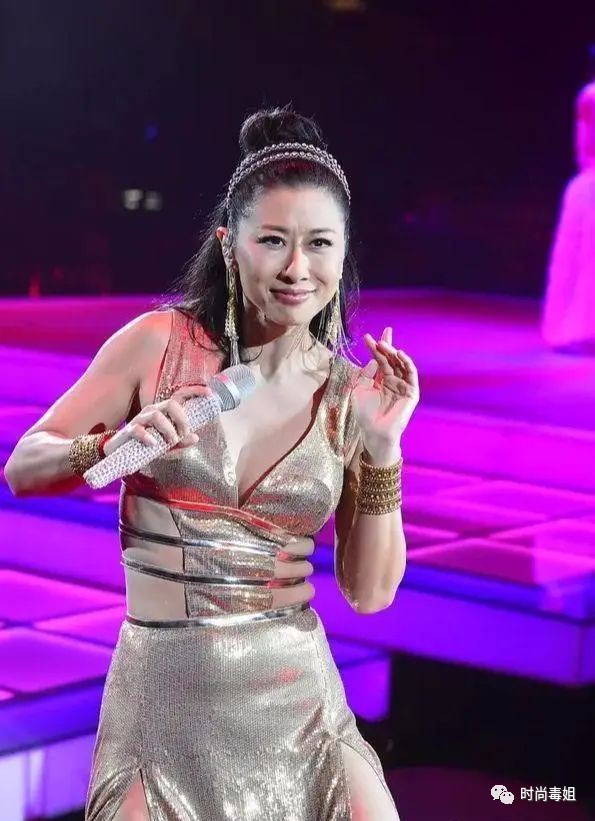 舞臺造型則表現得相當放得開,即便年紀大,但是對於葉倩文這種膽大的人來講,完全不是問題,一身黃金緊身裙大秀妖嬈身段,相對緊身的設計勒出小腹三層肉,真是讓人佩服!