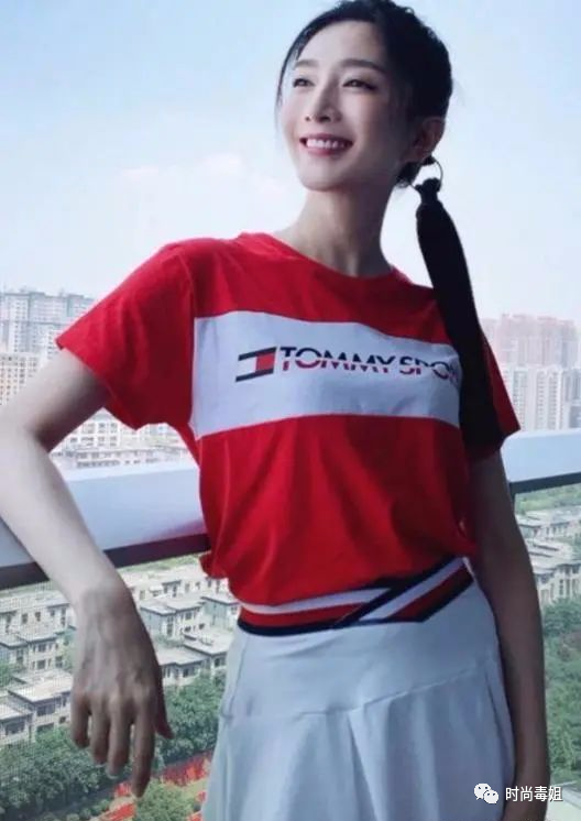 江疏影也是氣質美女,同時膚色也是相當白皙,所以在這次的穿搭造型中更顯得非常出眾。上半身穿著簡約的紅色T恤,下身穿著白色的半身裙,紅白的搭配也是相對經典的一種穿搭法,看看照片中的江疏影,真是又美又時髦。