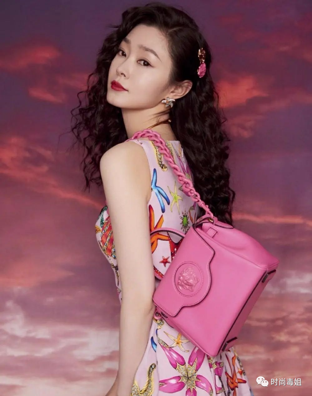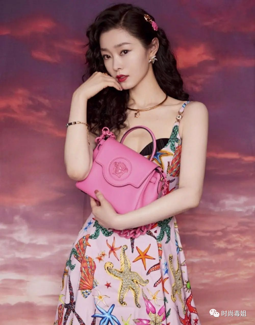 宋軼在造型設計上,明顯花了小心思,玫紅的手提包,與衣身不同色系的搭配,實力搶鏡,吸睛又時髦。金色頸鍊的點綴,在吊帶裙這樣的單品,起到畫龍點睛的作用,襯得皮膚更加白皙漂亮,留起一頭長卷發,氣質更迷人,女人味十足。
