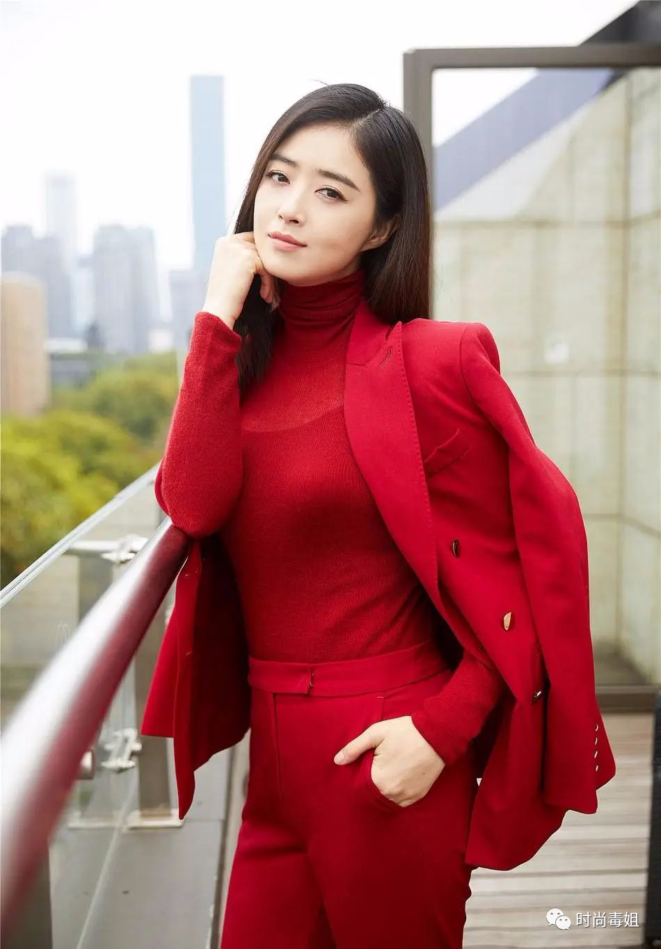 西服套裝穿搭簡單即穿即走,流暢的線條幹淨利落,職業感特別強,稍微不注意,就變得很平庸,讓人不敢輕鬆靠近。所以穿西服挑對內搭很關鍵,外搭幹練帥氣,內搭柔美性感,剛柔並濟才能碰撞出精彩的火花,即使是明星蔣欣也同樣遵循穿搭法則。她這次則選擇了,紅色針織衫做為內搭,溫柔顯嫵媚,利用彈性的材質面料,輕鬆撐出迷人的豐滿感,曼妙的曲線好搶鏡,女人味爆棚,讓人賞心悅目。