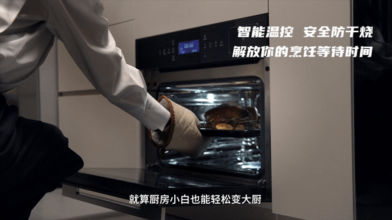 其次,是它簡單便捷的操作:支持提前預約蒸烤時間,省時省心,一鍵啟動即可。用它來做烤雞,將整隻雞醃製好,加入配菜放烤盤送進去就不用再管了。