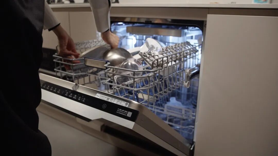 這款洗碗機的嵌入式門板顏值也很高,簡約又大方,適配這位都市麗人的精緻風格。