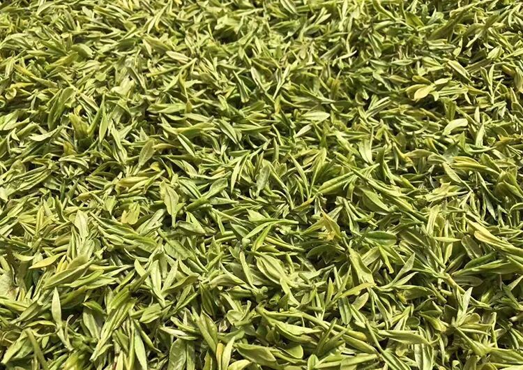 幹茶外形扁平,挺秀尖削,勻齊潔淨,色澤為翠綠尚潤。