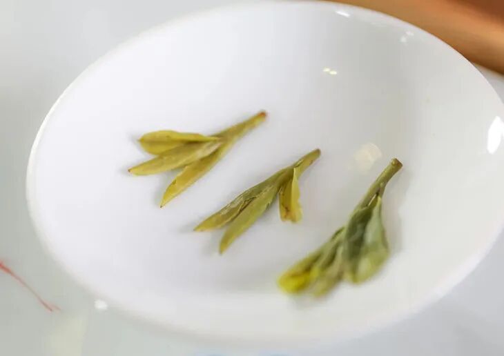 採摘標準以一芽二葉為主,色澤為黃中帶綠,渾然天成,芽葉扁平。