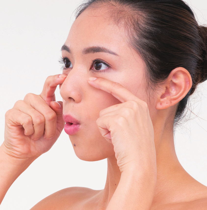 日常生活中幾乎不會活動眼睛下方,因此這裡的肌肉力量較弱,容易積累脂肪。用這個方法可以緩解鬆弛。