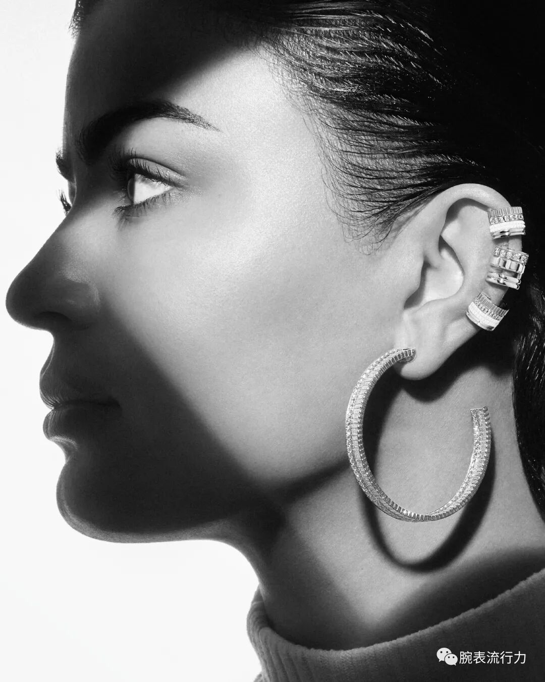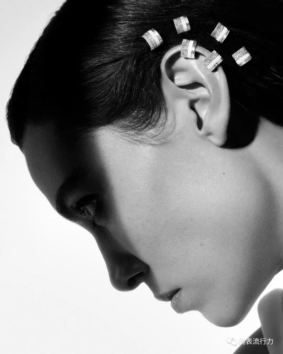 全新耳夾作品沿用Quatre系列標誌性四大經典元素,將白金、鑽石與白色高精密陶瓷圈完美結合,於耳畔展現簡約幾何美感,演繹不受拘束的自由風情。
