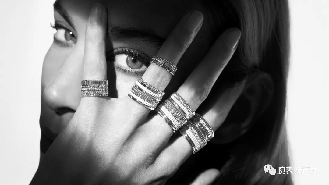 全新Quatre Double White系列呈現璀璨耀眼的光芒。此款戒指包含Quatre系列所有標誌性紋飾,於指間盡顯大膽吸睛的超現代風格,一經問世便成為必不可少的珠寶單品。