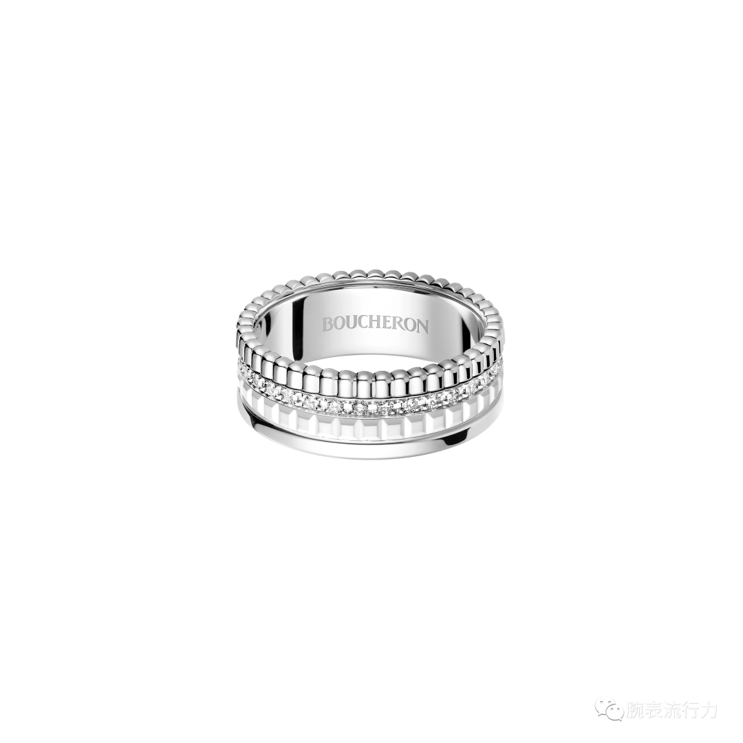 Quatre Double White系列婚戒,白金與白色高精密陶瓷