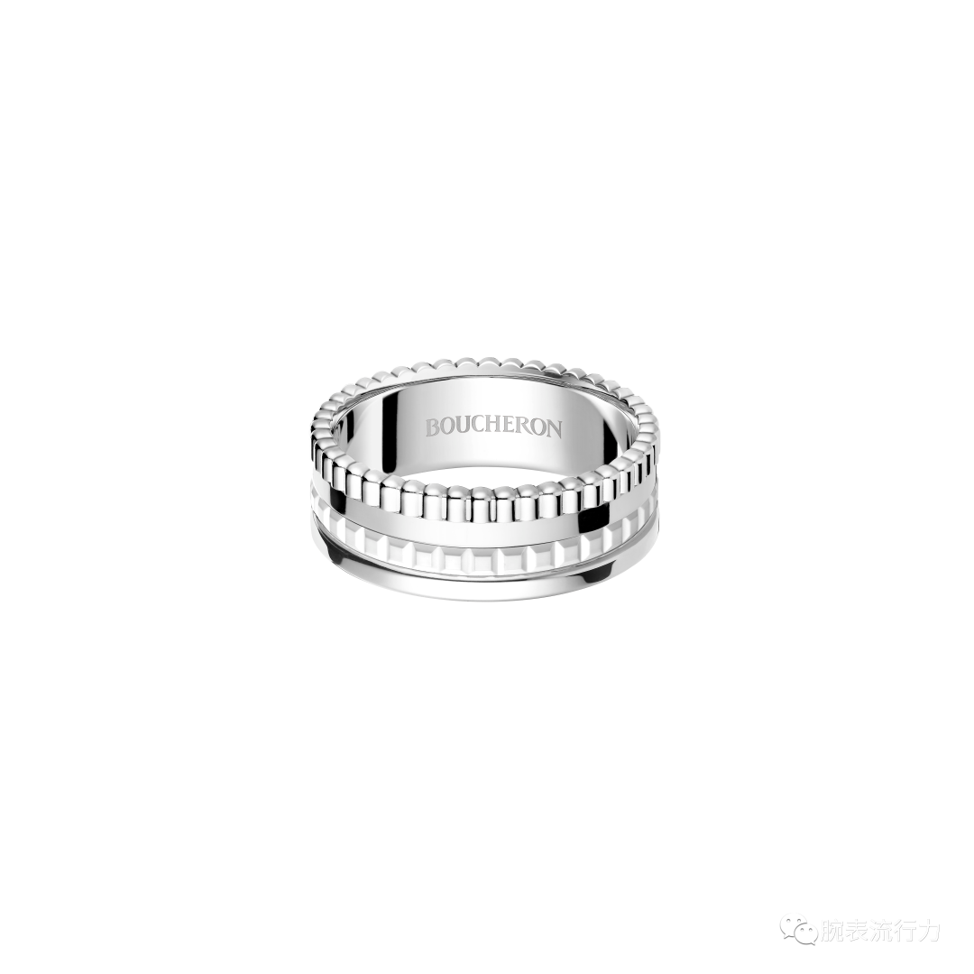 此款戒指由白金材質及白色高精密陶瓷打造,矚目耀眼,將Quatre系列經典紋飾一次性呈現,玩轉超現代風格設計。如同一張充滿無限可能的“白紙”,等待佩戴者隨心演繹獨特型格及真我風采。