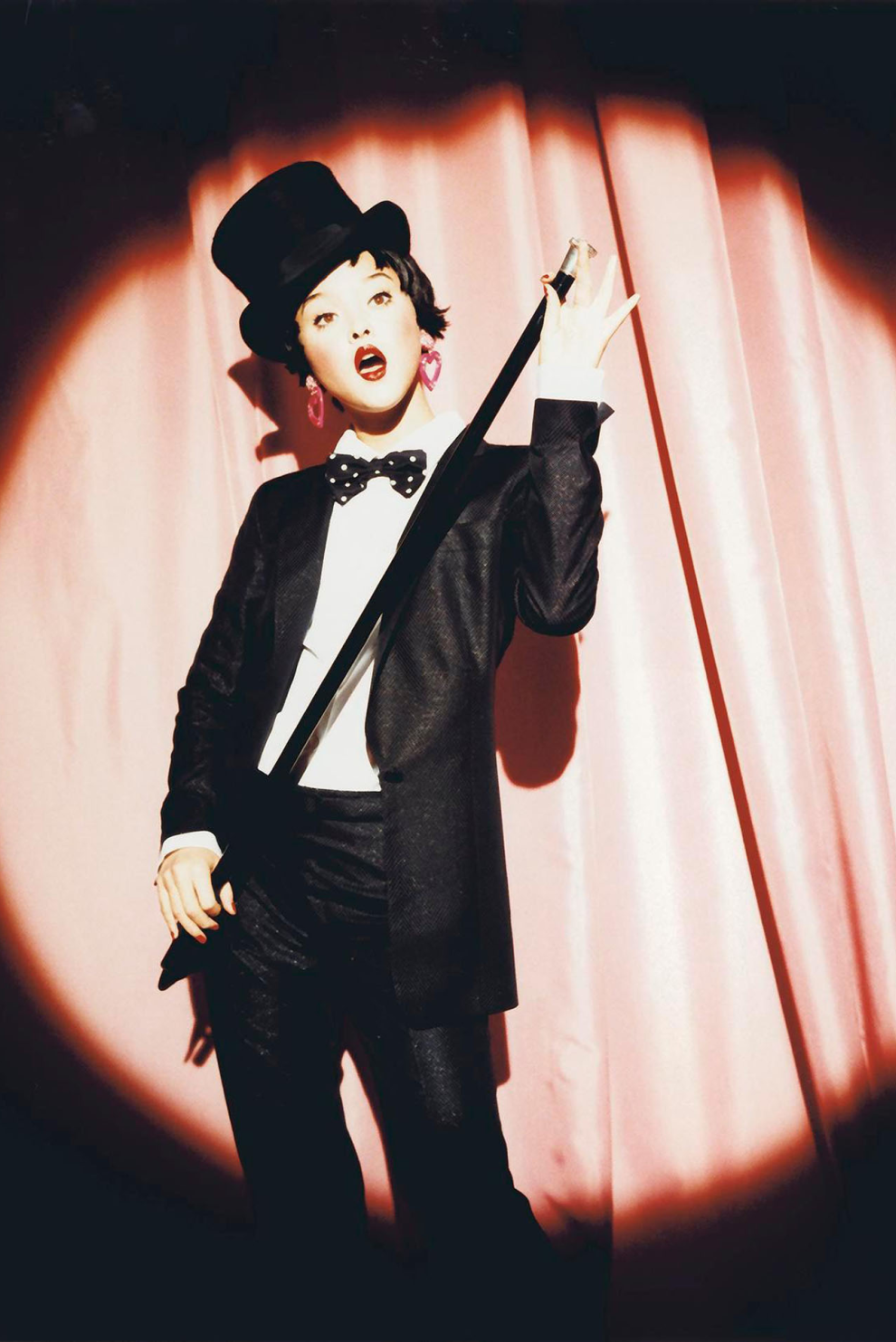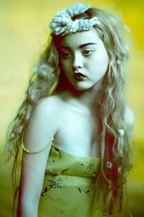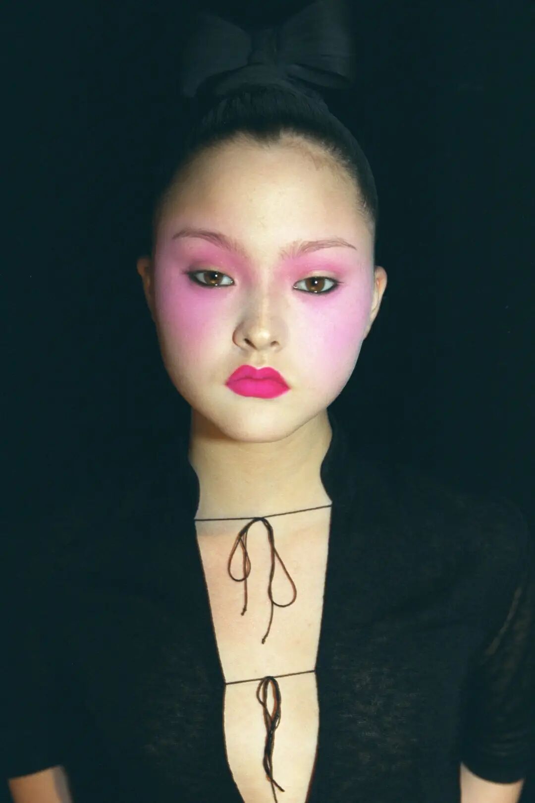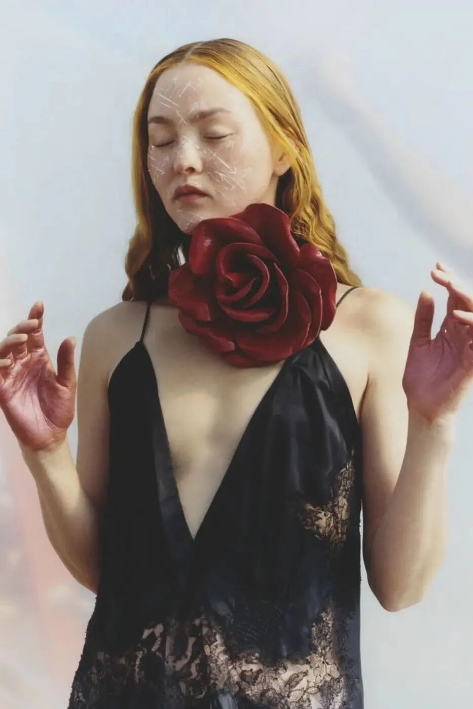 吊稍鳳眼、高挑細眉、M 唇,靈性的五官帶著強烈的桀驁和疏離感。她的五官就像匠人細緻描繪過的娃娃,下掛的覆舟小嘴,又彷彿藏匿了對傳統審美的不屑一顧。