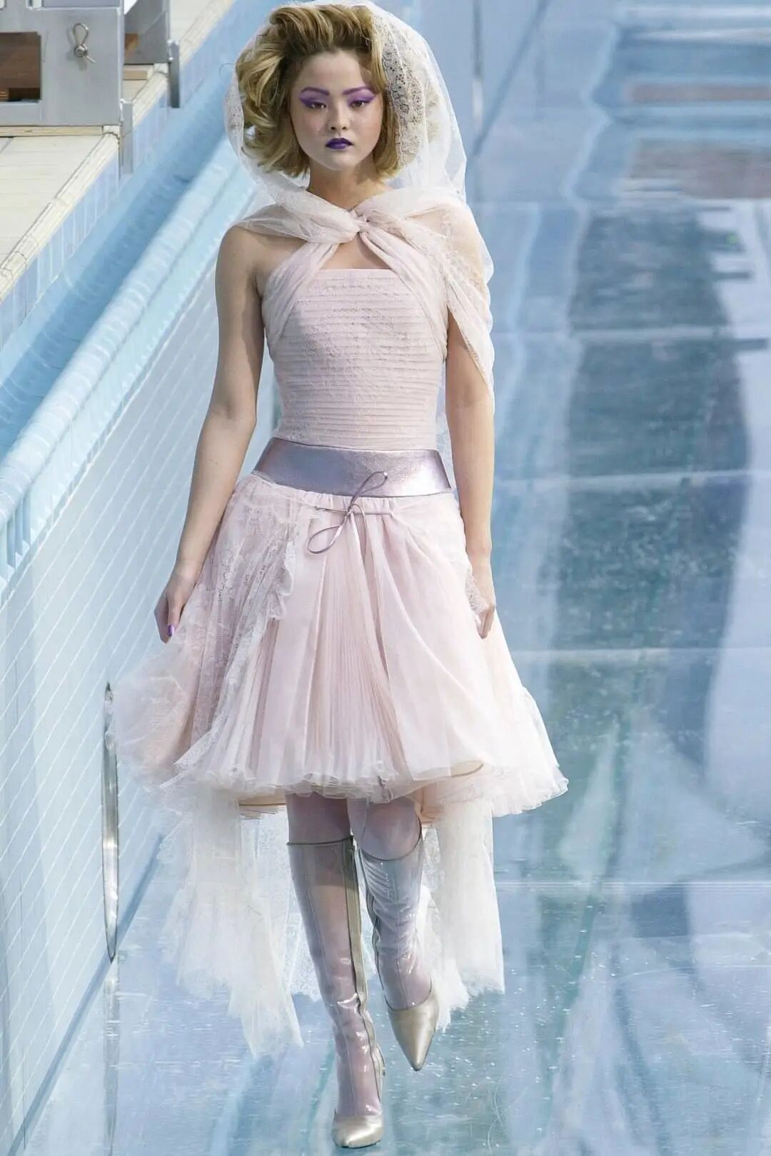 這姐雖然長著一張娃娃臉,但是行為是真的酷。長一秒還穿著長裙在 T 臺上走秀,下一秒就直接套上牛仔褲出街,又美又颯。
