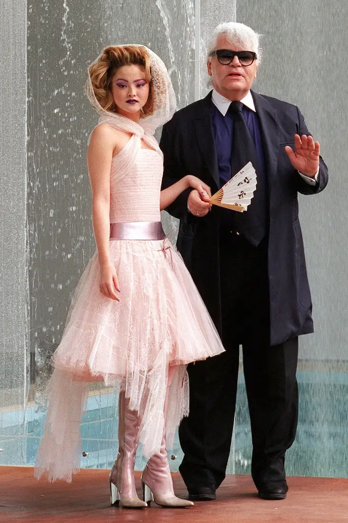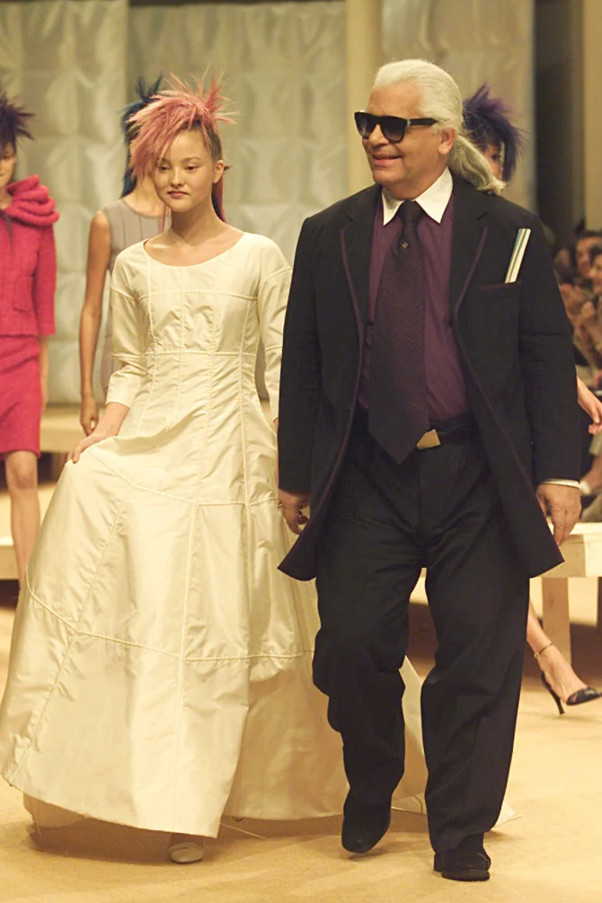 我模特職涯的代表作是1998 年與老佛爺Karl Lagerfeld為CHANEL 代言的合作。他們本來要把我刷掉的(因為我帶著學校的揹包現身),但 Karl 在我身上找到了其他人沒有發現的特質,我一輩子都對他心存感激。