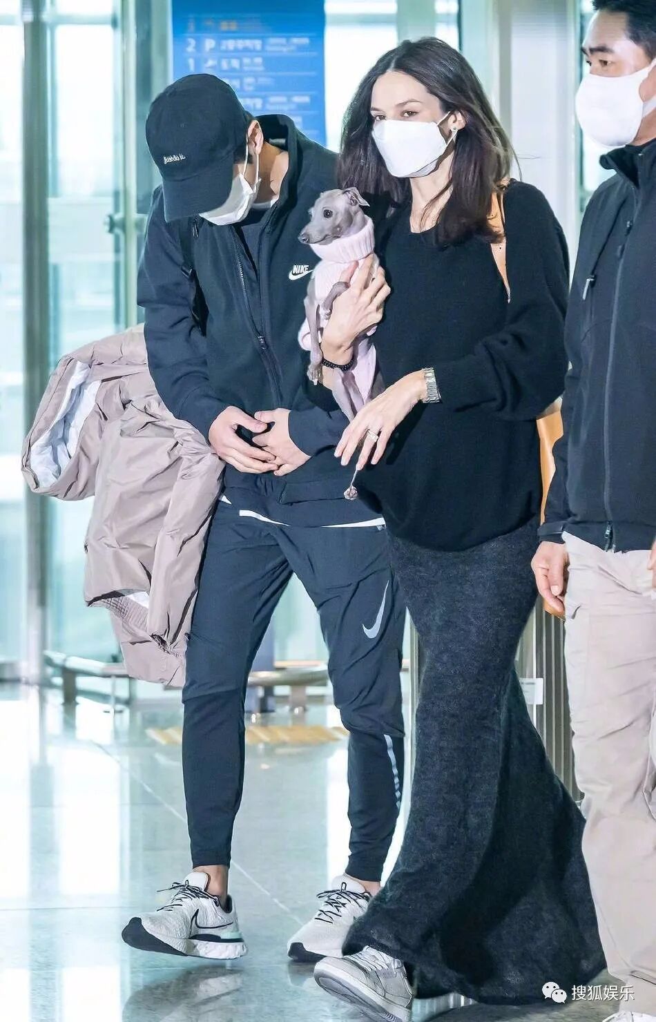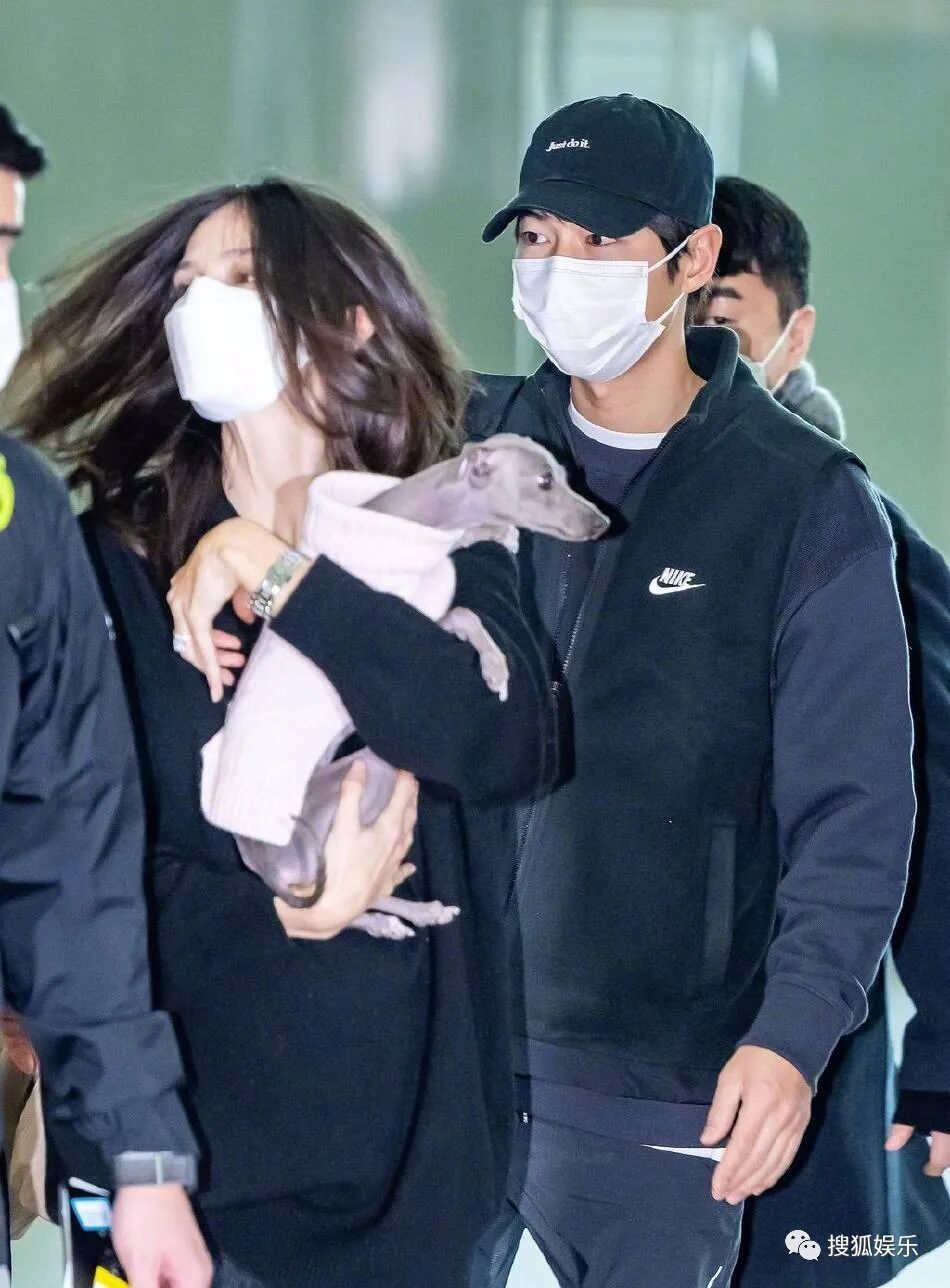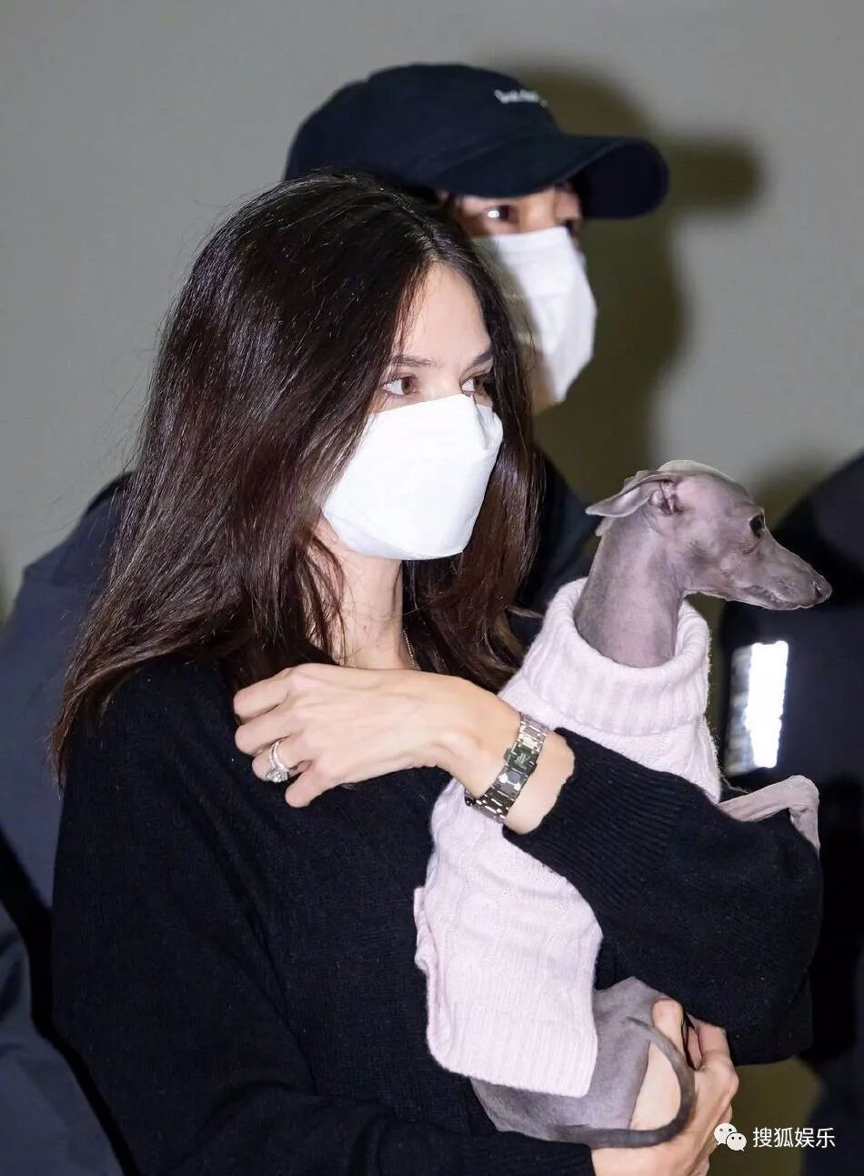 凱蒂抱著狗狗,宋仲基將其護在身旁。