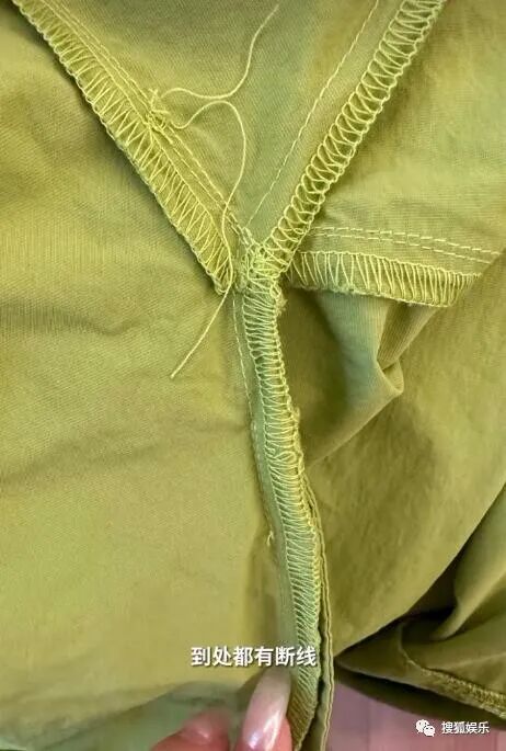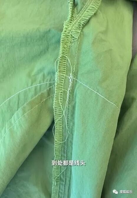 做工方面,她展示了衣服內側的車工,到處都是線頭和斷線。