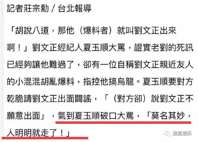 緊接著經紀人夏玉順受訪回應,稱那位所謂的好友是胡說八道:“人明明就走了。”