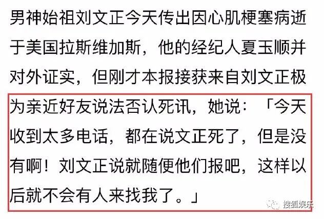 她說:“今天收到太多電話,都在說文正死了,但是沒有啊!劉文正說就隨便他們報吧,這樣以後就不會有人來找我了。”