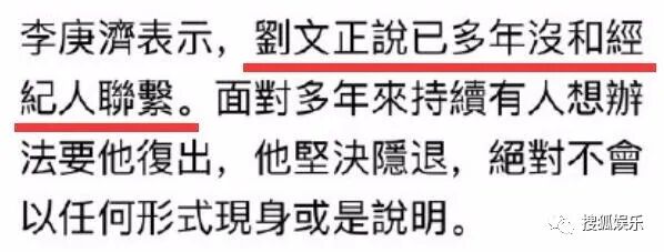 總而言之,一代偶像劉文正現在依然平安在世,且隱退之心堅定無比。既然他只想安靜生活,大家也就不用再過於關注和打擾了……