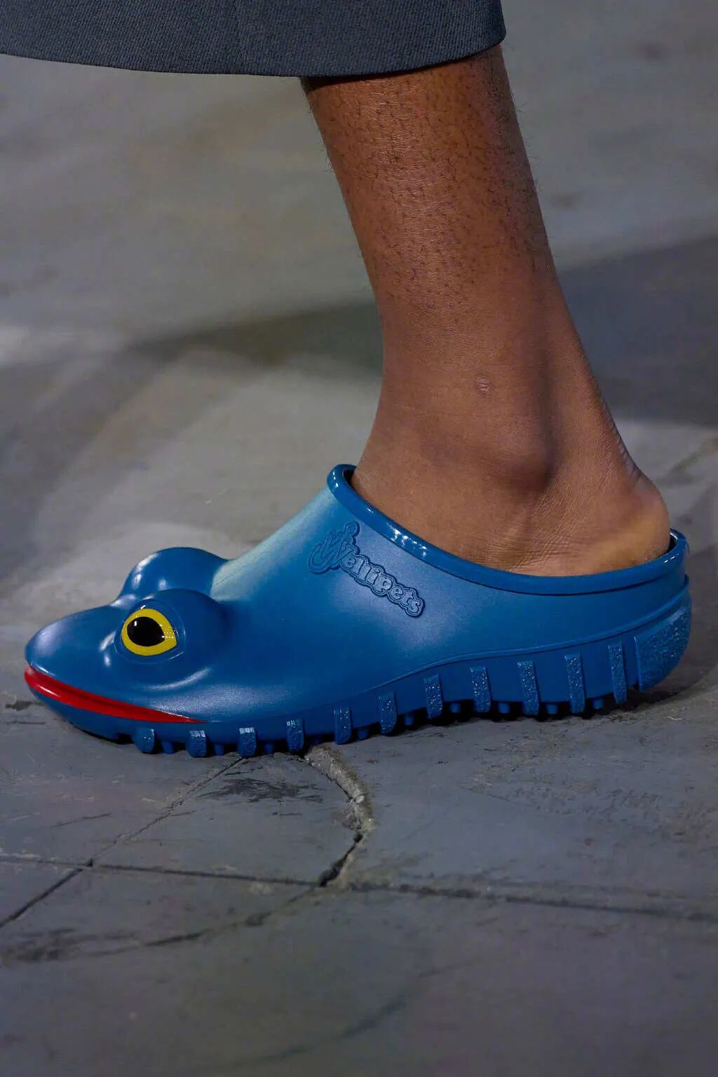 JW Anderson 2023 秋冬男裝系列,與英國雨靴品牌 Wellipets 合作,推出一款青蛙拖鞋,狠狠撩了一波潮男們的心。