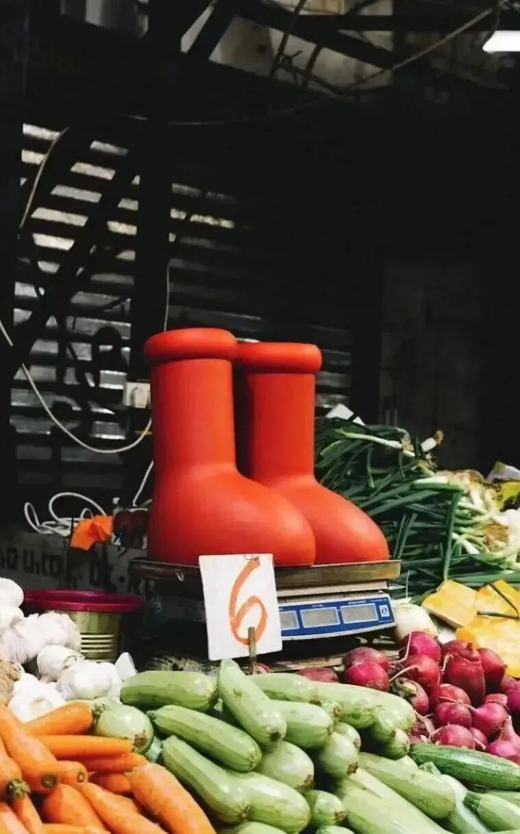 而這雙大紅靴的靈感來自美國動畫《Dora the Explorer》中小猴子腳上的靴子。
