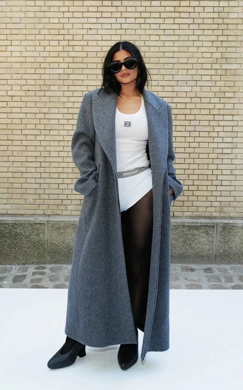 凱總 Kylie Jenner 之前去看秀時也穿了同系列的黑色款。搭配淺灰色拖地大衣竟然也毫無違和感,又霸氣又調皮的感覺。