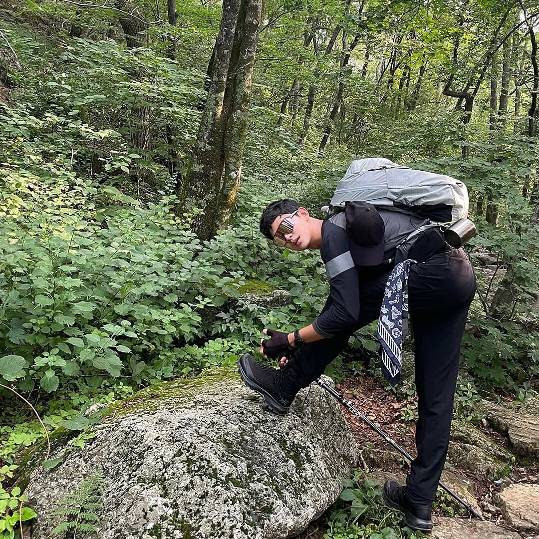 除了爬山,現在不少人也加入了徒步大隊。徒步不止在攀升高度,還有是行走的長度,更需要儲備足夠量的水、飲食等等,所以隨身攜帶登山杖、小揹包也是必須的,整體造型更為中性有型。