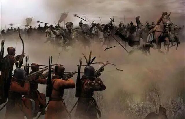 上圖_ 用弓弩射擊匈奴騎兵的漢軍