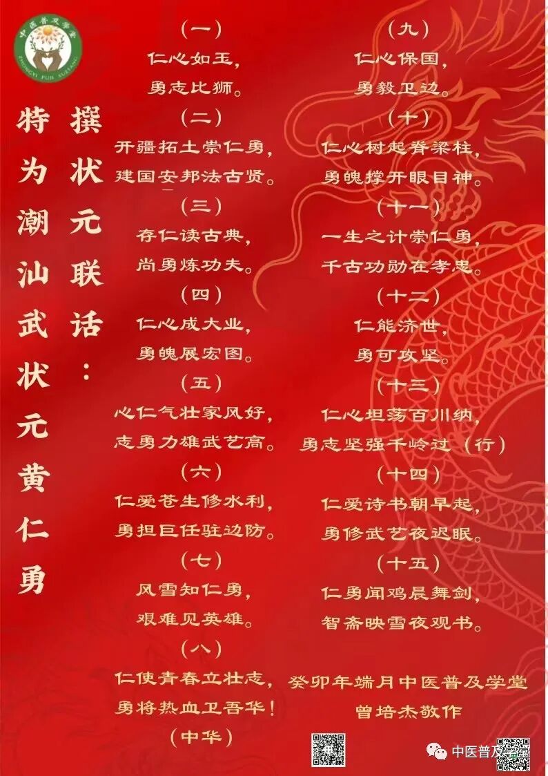 而且要文為時作,最好你寫的東西對時代有意義!這時代需要鄉村振興,需要文化復興,需要教子成才,需要與時俱進,需要守衛邊疆等等。這些狀元爺都做到了,而且狀元傳記裡都有。所以,老師今天作了15首狀元聯話,和狀元爺名字有關的嵌名聯,還有六首狀元精神,聯贊!做好《狀元聯話》,有推波助瀾之功!