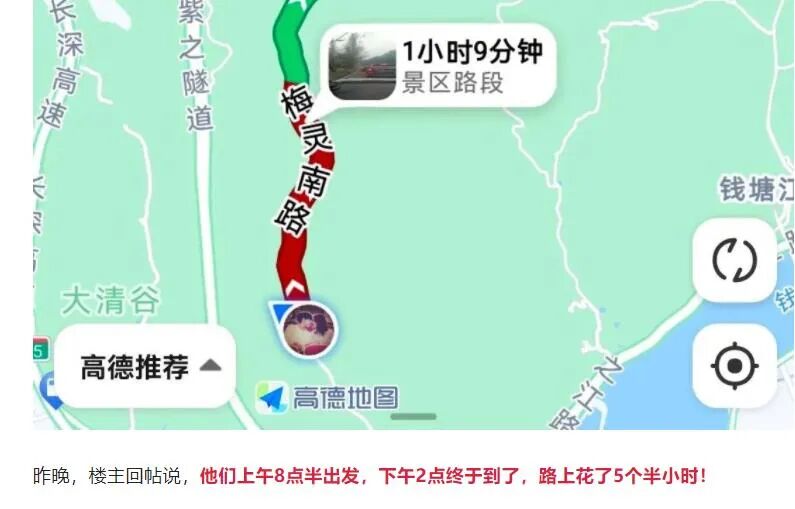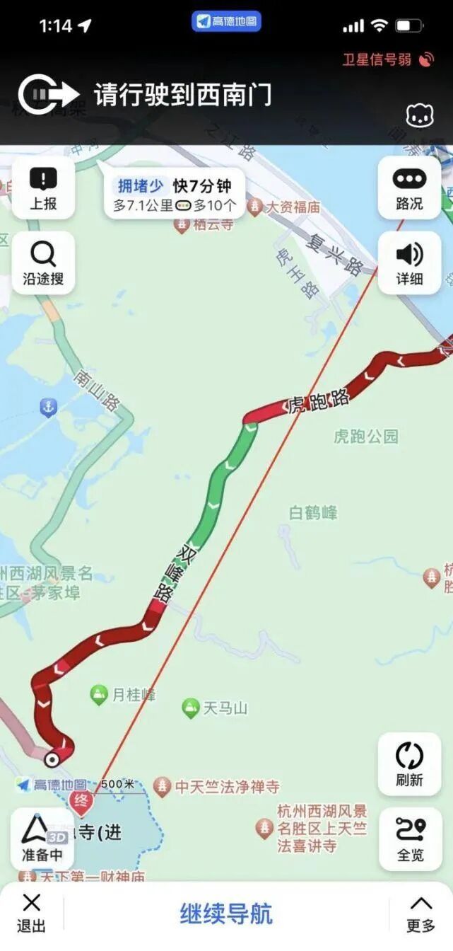 你打開前往靈隱寺的導航,會發現道路“紅到發紫”。
