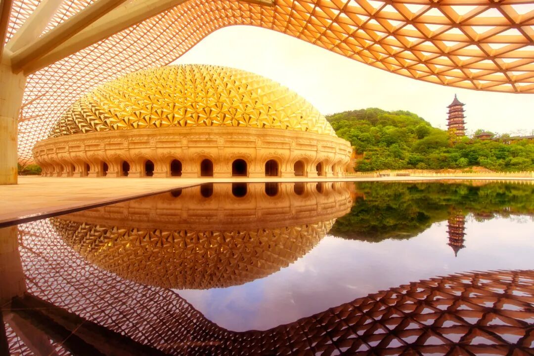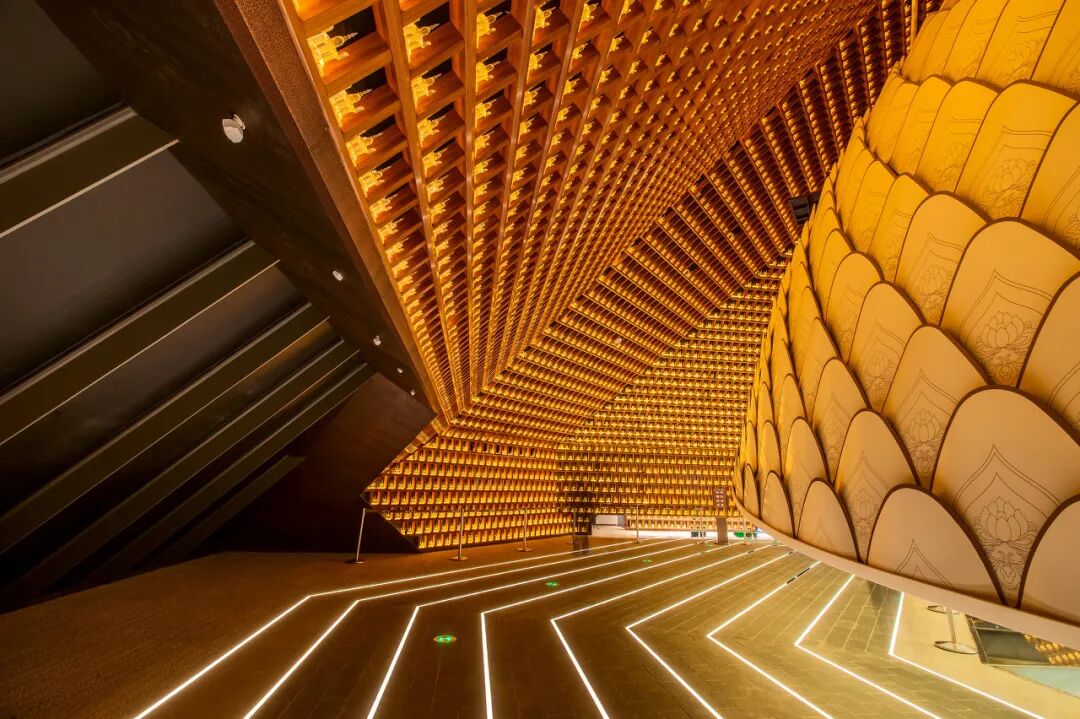 南京牛首山的佛頂宮,整體造型是以巨型蓮花托起佛頂髮髻的摩尼穹頂,直徑超過200米,非常輝煌壯觀。