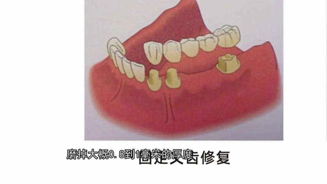 此方法是將缺牙部位兩邊的牙齒的釉質層磨掉,大約磨去0.8到1毫米的厚度,再使用粘結劑將中間缺失的牙齒及兩邊新做的烤瓷牙冠,固定在兩邊的基牙上,即為烤瓷固定橋。