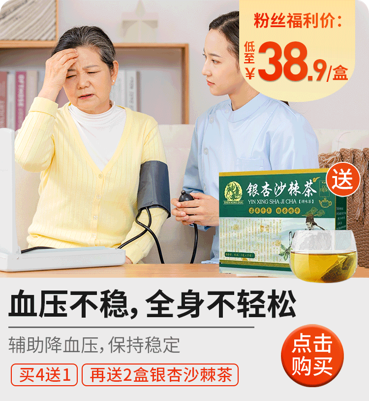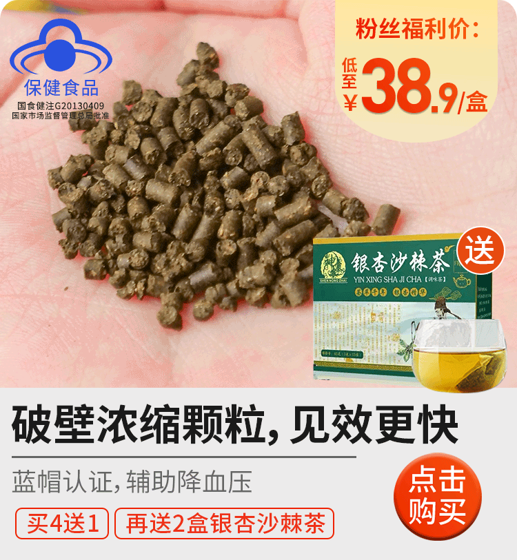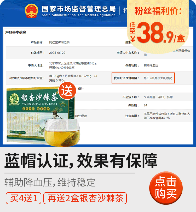 小廚還為粉絲朋友爭取了福利!同仁降壓茶一盒有20袋。68元/盒(2.2g*20袋),買4送1,再送銀杏沙棘茶2盒,低至38.9元/盒。