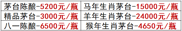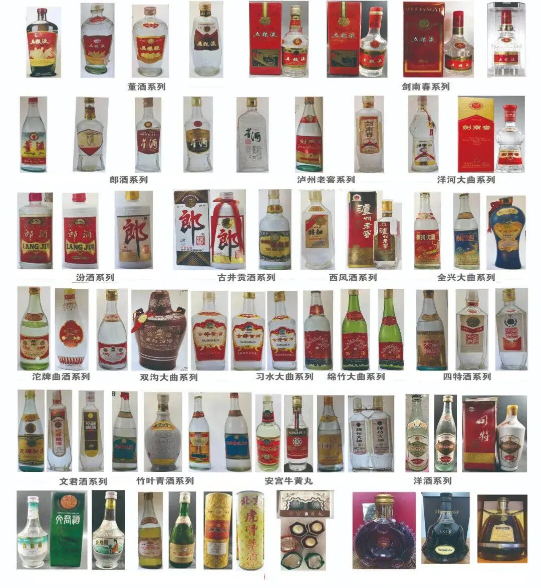 另收購2000年前後的高度五糧液、劍南春、郎酒、釣魚臺、董酒、古井貢酒、全興大麴、酒鬼酒、瀘州老窖、汾酒、西鳳及108種地方名酒,以及各種洋酒。