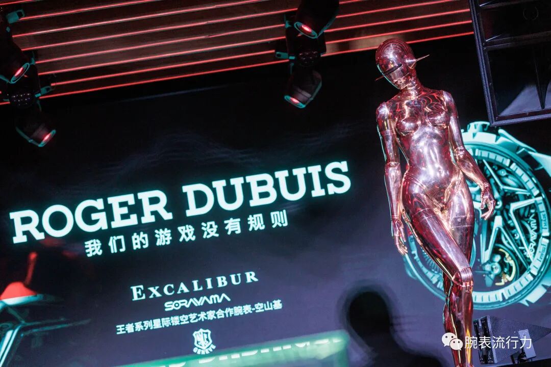 全新王者系列星際鏤空藝術家合作腕錶-空山基於當晚桀驁亮相,享譽全球的日本藝術家空山基(Hajime Sorayama)作為其藝術領域的先驅,藉由超現實主義女性“性感機器人”(Sexy Robots)的創作顛覆了既有常規,也撼動了傳統思維。其超凡才華與過人天賦引領著他與高級時裝、科技和音樂領域的知名人士進行合作。空山基不斷在創作之路上突破藝術界限,此次,羅傑杜彼邀請他迎接創造性挑戰:煥新詮釋品牌經典的五芒星元素。
